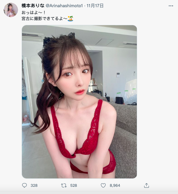 如果是2018年版本的桥本ありな(桥本有菜)那没问题的,那时候的她超迷twitter,为了吸流量她不但走到哪拍到哪而且对业界八卦知之甚详,辻本杏引退的原因(存到钱回老家)、RION在片场被大家当老佛爷照顾的事都是她和我说的,只是几年下来,随着她成为业界最顶尖的女优,开始深居简出的生活后她不但佛系经营SNS、业界的八卦好像也和她没关系了,在2019年的TRE上,她整个像变了一个人似的,我超不习惯的: