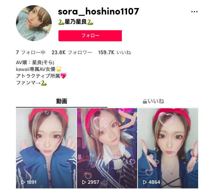 所以才会有人用「twitter追踪一万人就出道」的方式吸引粉丝关注(堀内未果子),但现在更流行的是用TikTok有很多人追踪来宣传ー理由很简单,因为比起twitter和IG,现在玩TikTok的日本人很多而且也更容易累积粉丝,而且片商要的也不多,2万个粉丝就很好用了〜