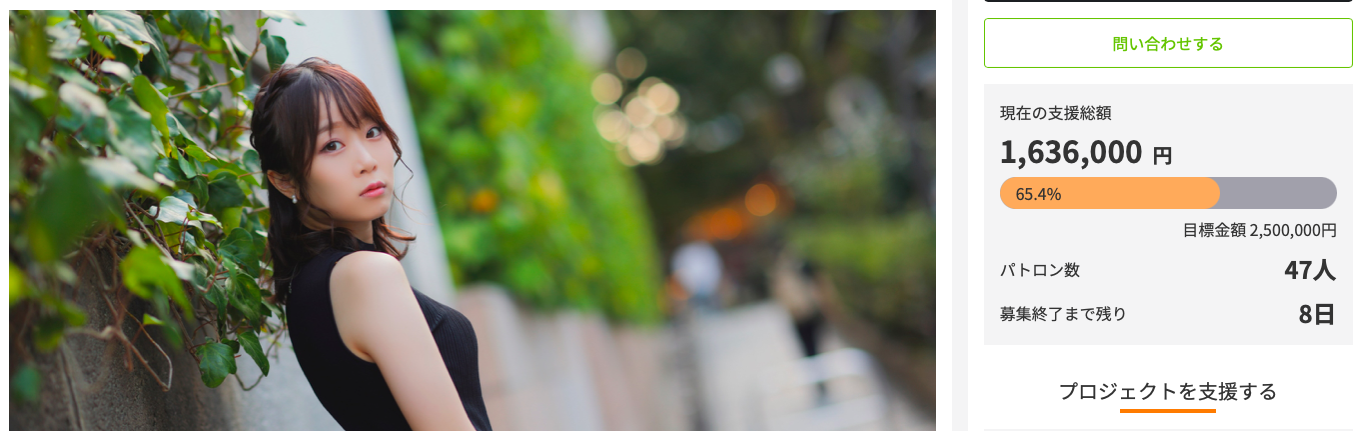 是的,她自己也这麼说,但她也说从出道到现在,也是该冷静思考接下来该怎麼做的时候了ー原因在她回覆自己的留言中有提到,那就是她目前正在募资想要拍摄写真集,但250万日币(约台币61.1万)的目标到现在还差90万日币左右(约台币22万),而时间只剩8天⋯