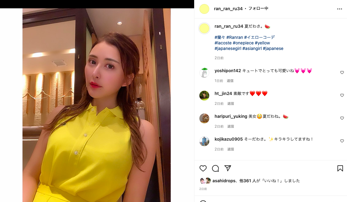 所以她们需要很多很多的女优,因为去年用过的女优有些人不能用了,比方说胡挑まどか(胡桃圆)和天国るる(天国露露)都好久没有更新twitter,存在感超级弱,比方说七海ティナ(七海蒂娜)先是厌食症然后暴食症发作,现在体重超过80公斤,明年能回来拍片我看都不容易,所以一定要做成员更换,而在八蜜凛、藤かんな(藤环奈)、森千里及神木兰等人陆续登场后,8MAN昨天又公布了一位新入团的成员,那就是脸蛋被遮住的「兰々」: